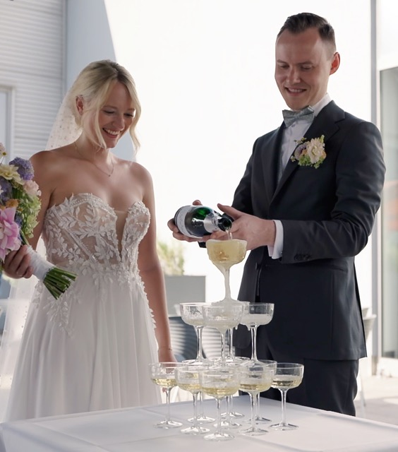 Nach der Hochzeit beginnt die sorgfältige Nachbearbeitung eures Films. Ich sichte das gesamte Material, schneide Video und Ton, passe die Farben an und verleihe eurem Film ein professionelles Colourgrading. Dieser kreative Prozess braucht etwas Zeit, sodass euer Hochzeitsfilm die Qualität und Emotionen bekommt, die er verdient.